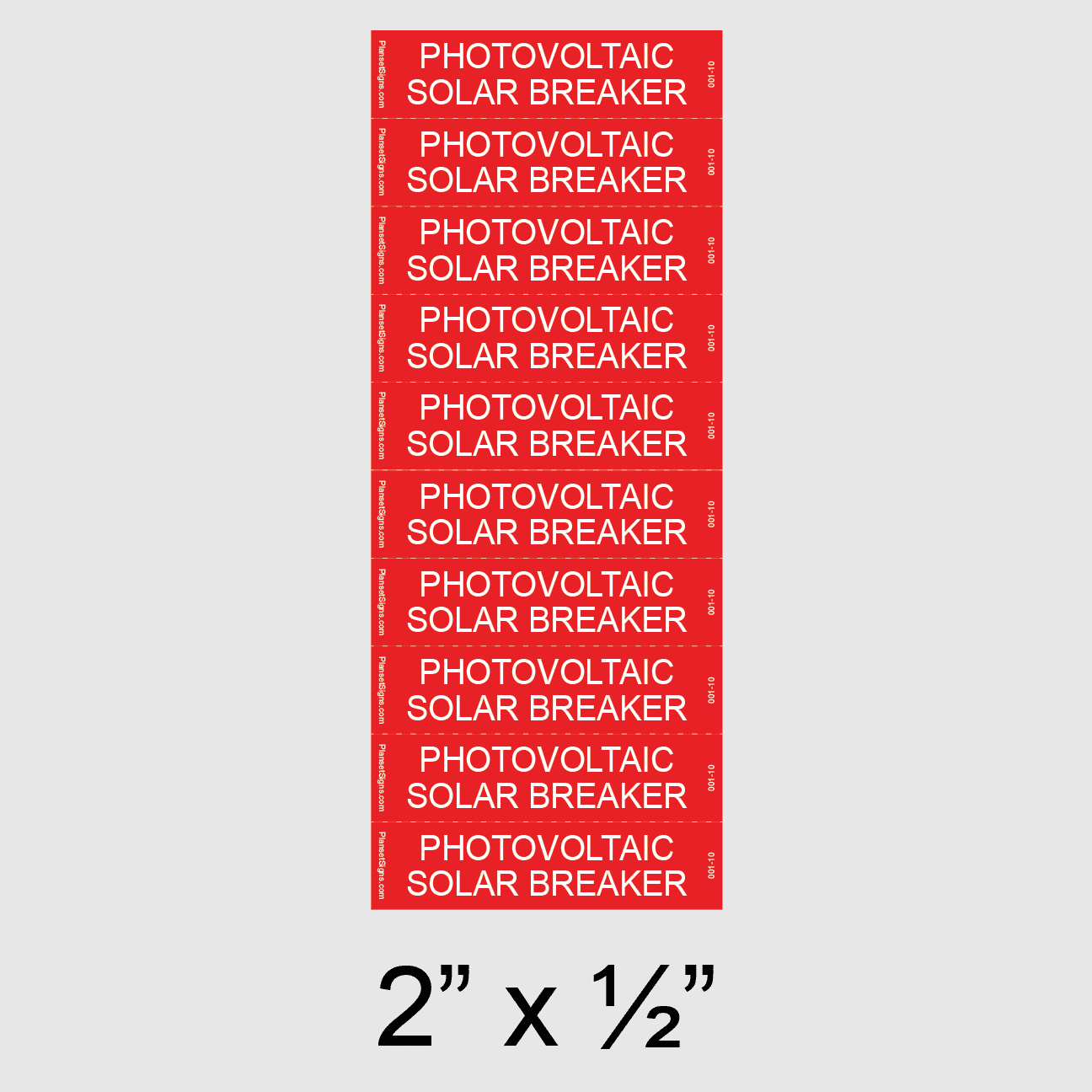 001-10 Photovoltaic Solar Breaker Label 10 Pack